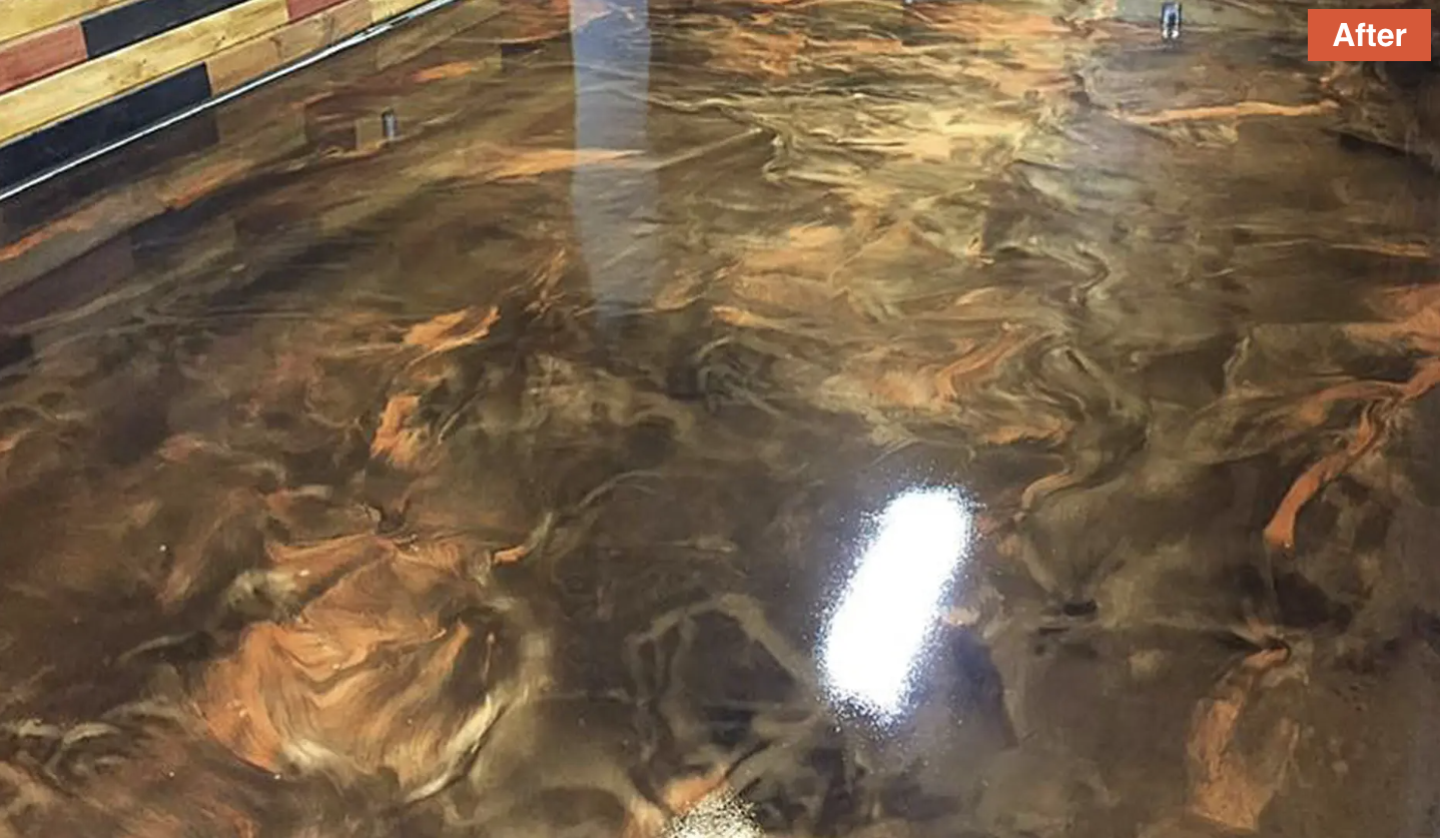 Metallic Marble Stains create a sleek, high-gloss finish that mimics the look of polished stone. Using metallic pigments in epoxy, this system adds depth, movement, and a one-of-a-kind design to interior floors.